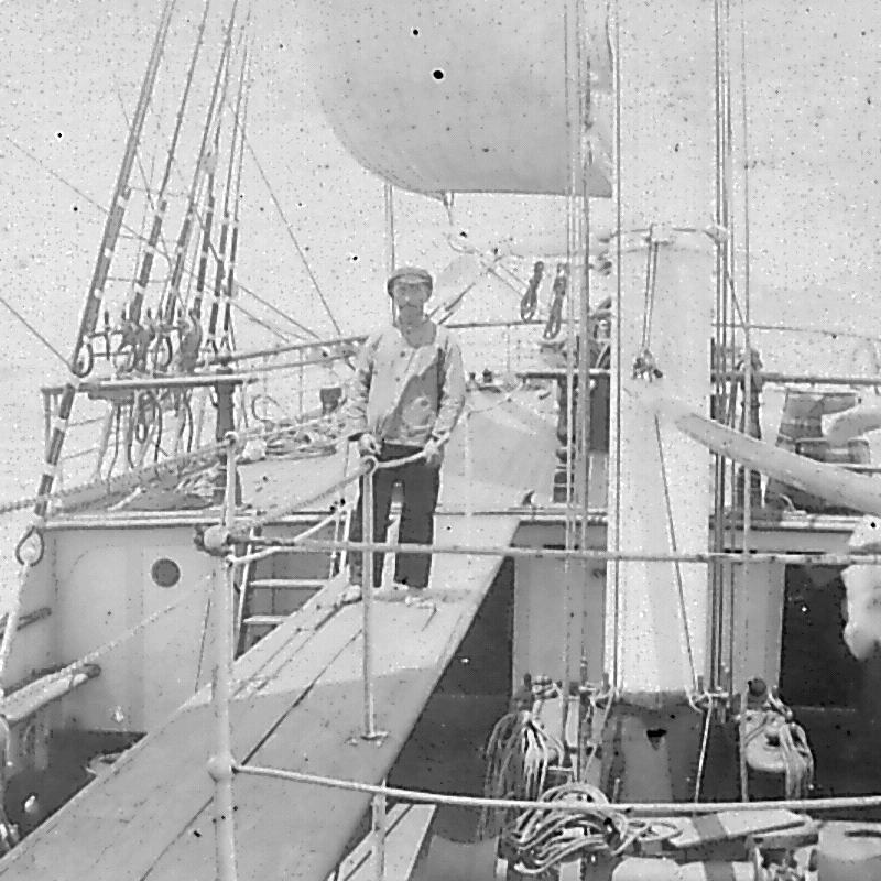 Il se trouve sur un trois mâts barque de la compagnie Bordes, sur le passavant de la "Victorine" en 1909.
